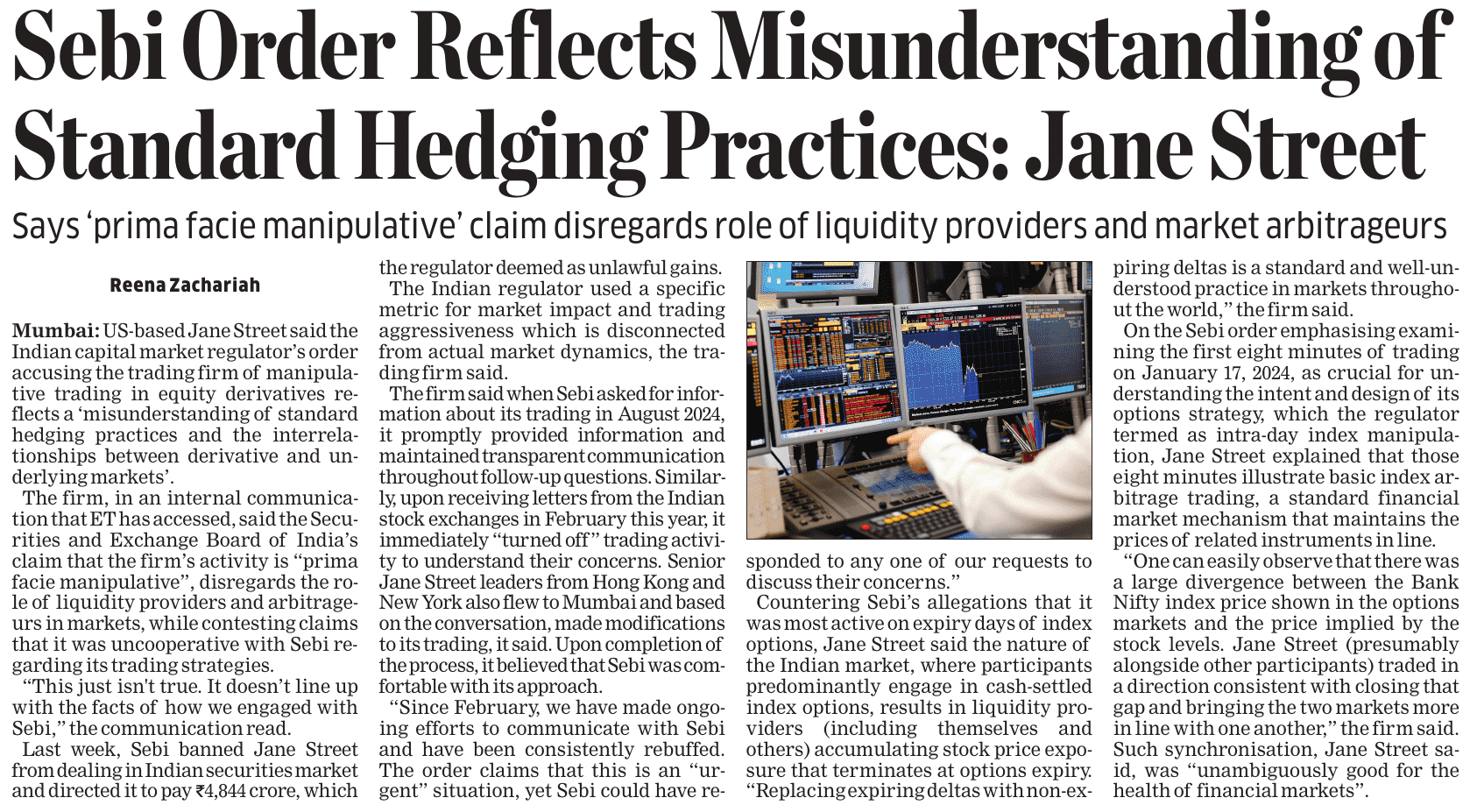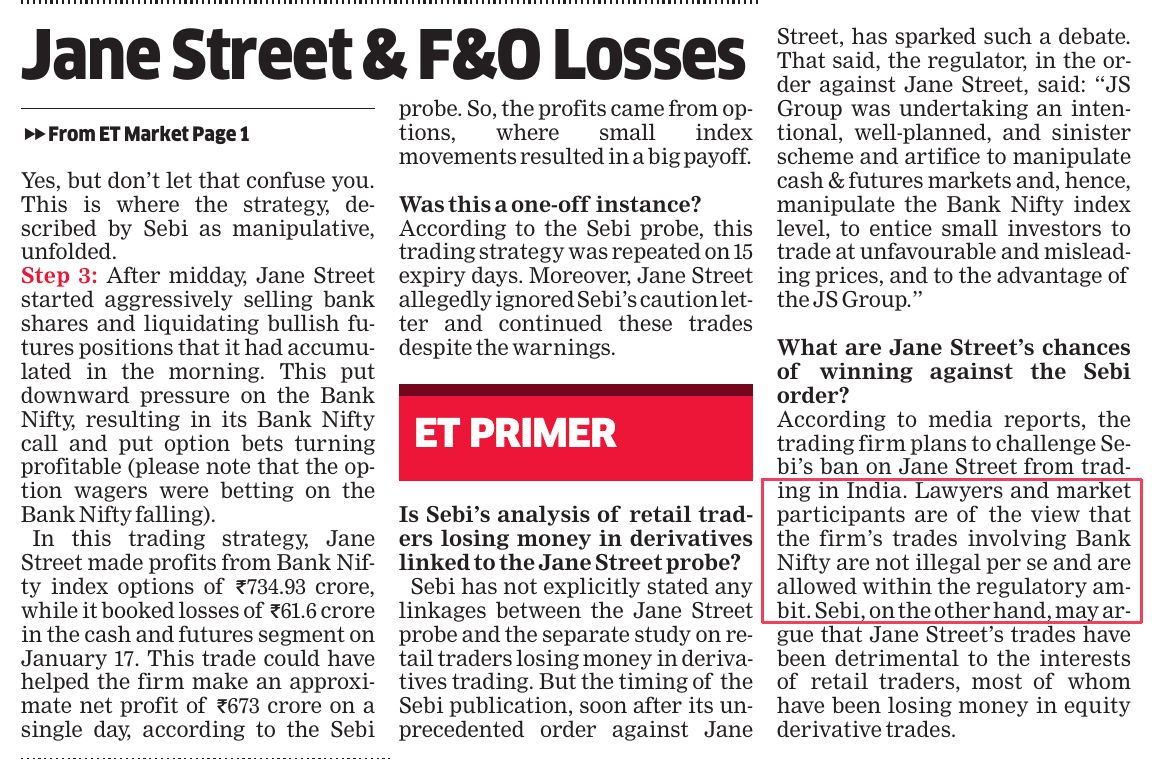 2. Economic Times, The Morning Brief Podcast, Nightmare on Jane Street, 8 July 2025: If market manipulation, only by intensity and scale.